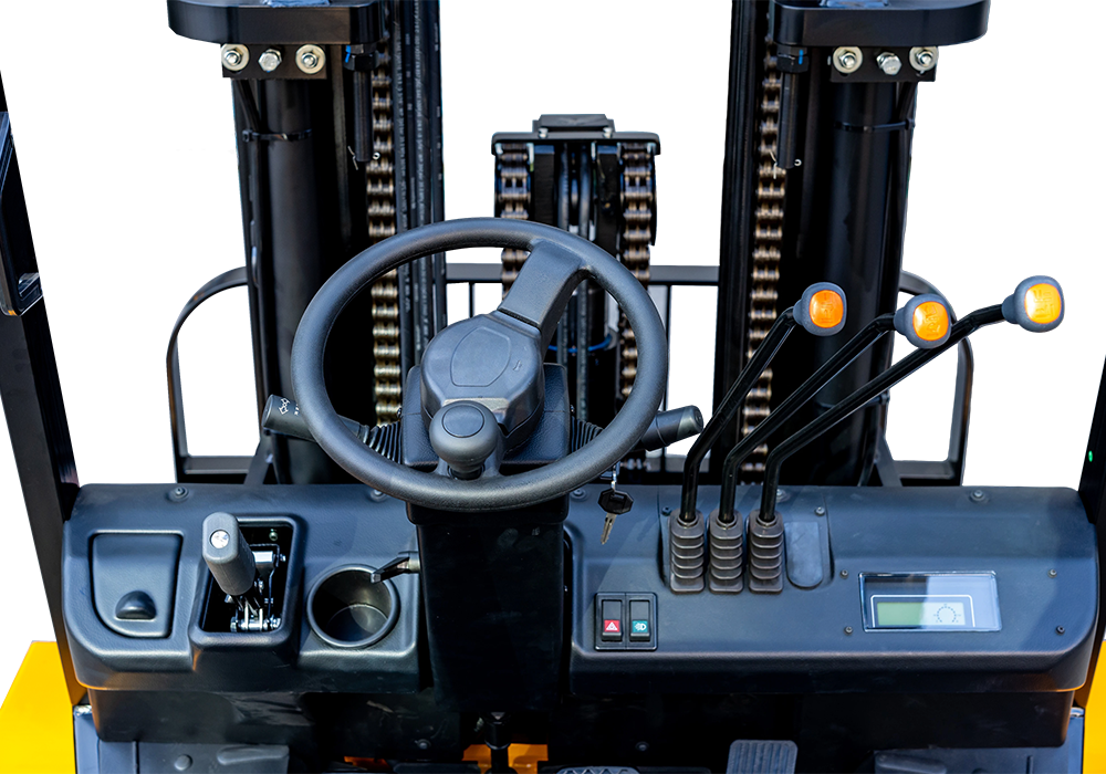 ● Suspended frame design with extra legroom, adjustable steering, and comfortable seating enhances ergonomics.