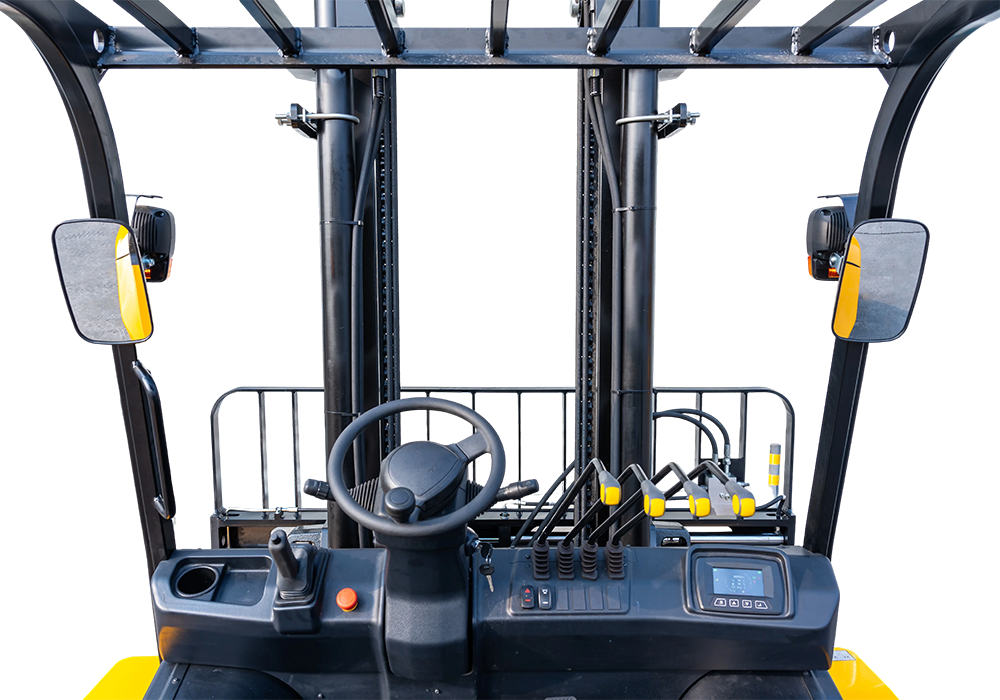 ●Heavy-duty overhead guard with reinforced top structure.