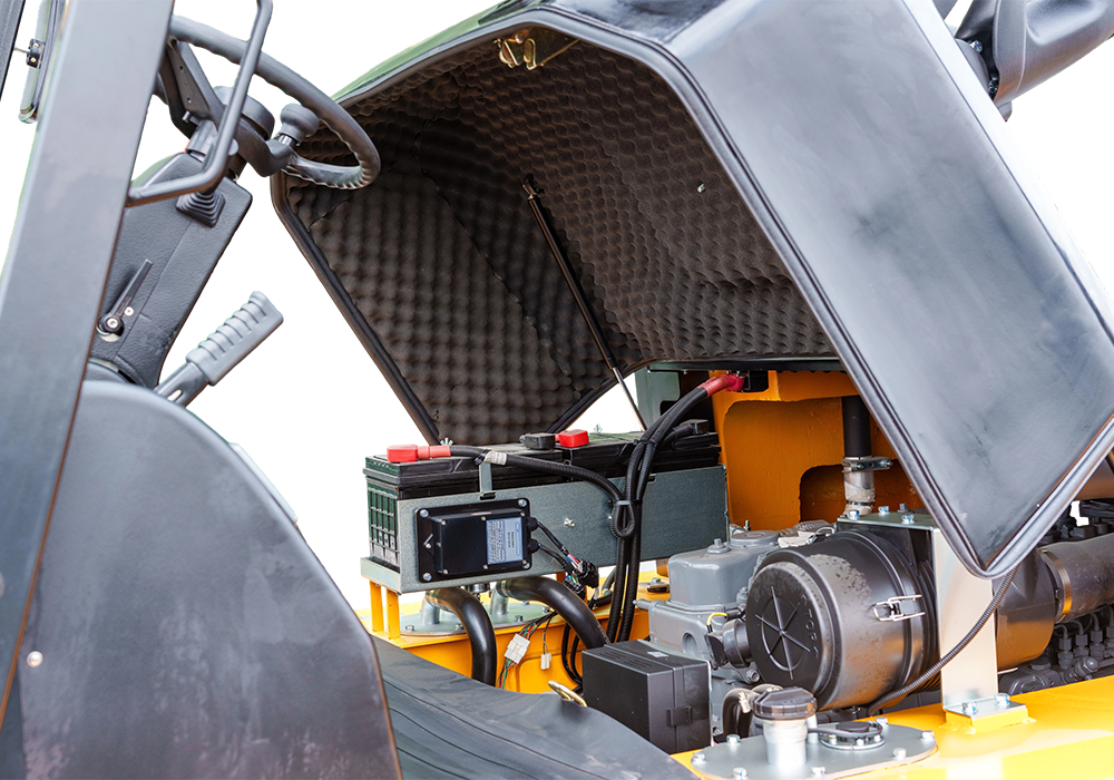 ● Engine hood opens nearly 90°, allowing effortless daily inspection and component replacement.