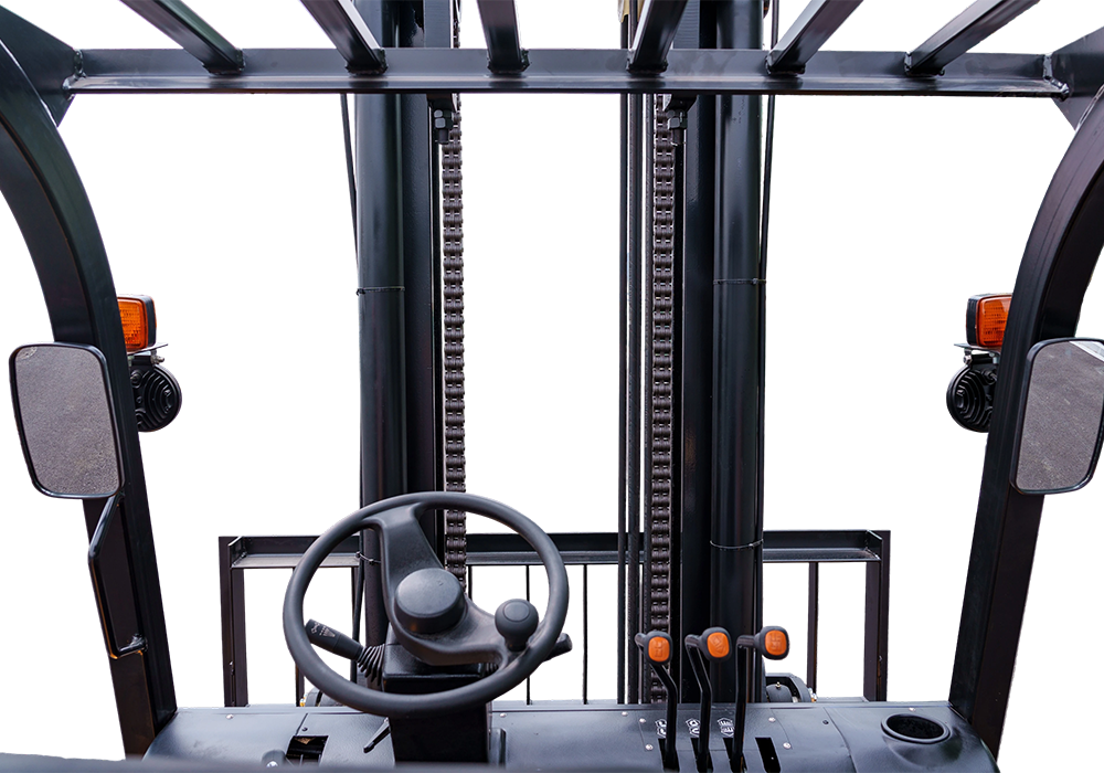 ● Strong overhead guard protects drivers from falling objects.